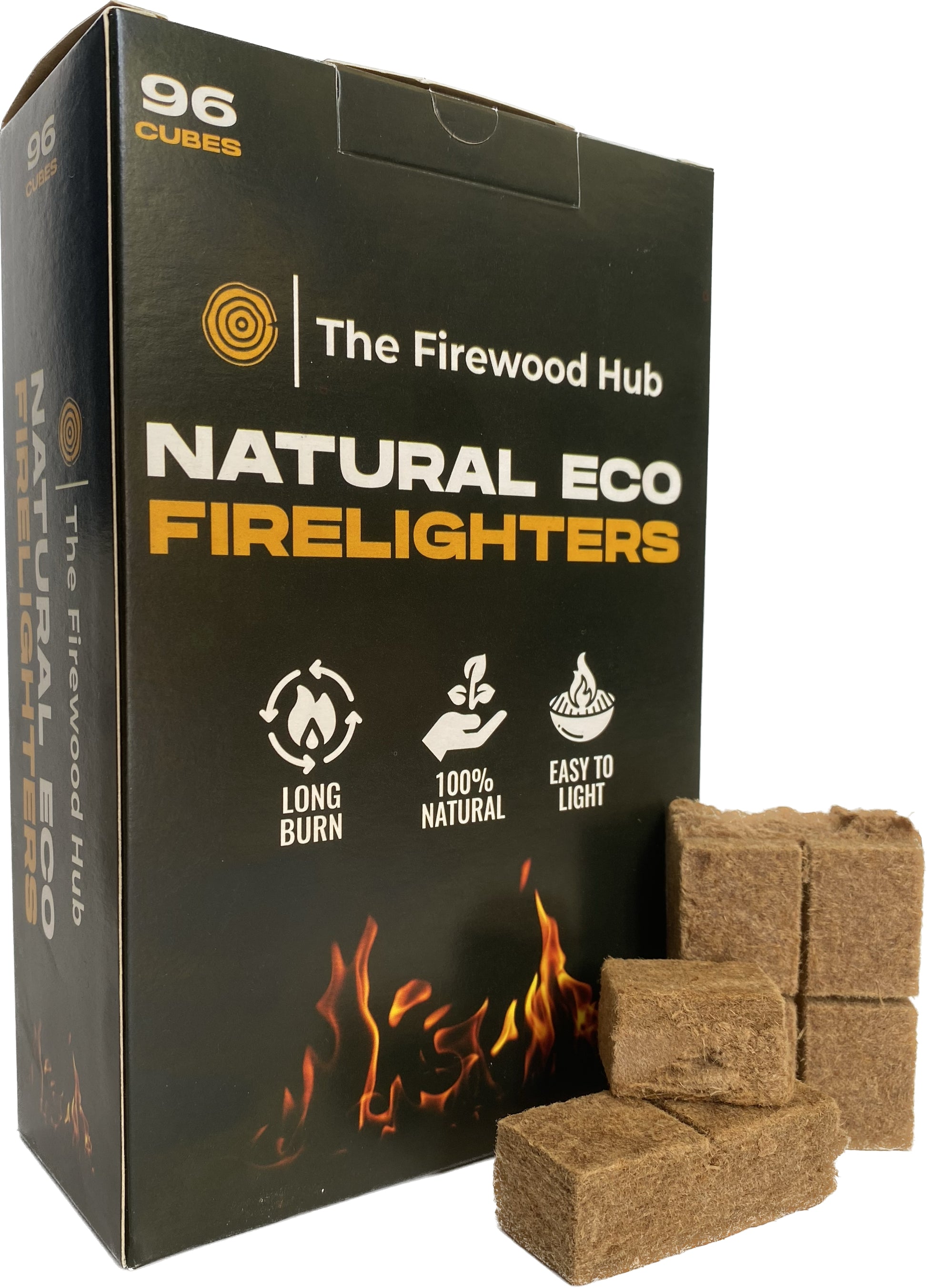 The Firewood Hubs 100% Natural firelights, with a long burn time of upto 10 minutes they are guaranteed to get your fire started.